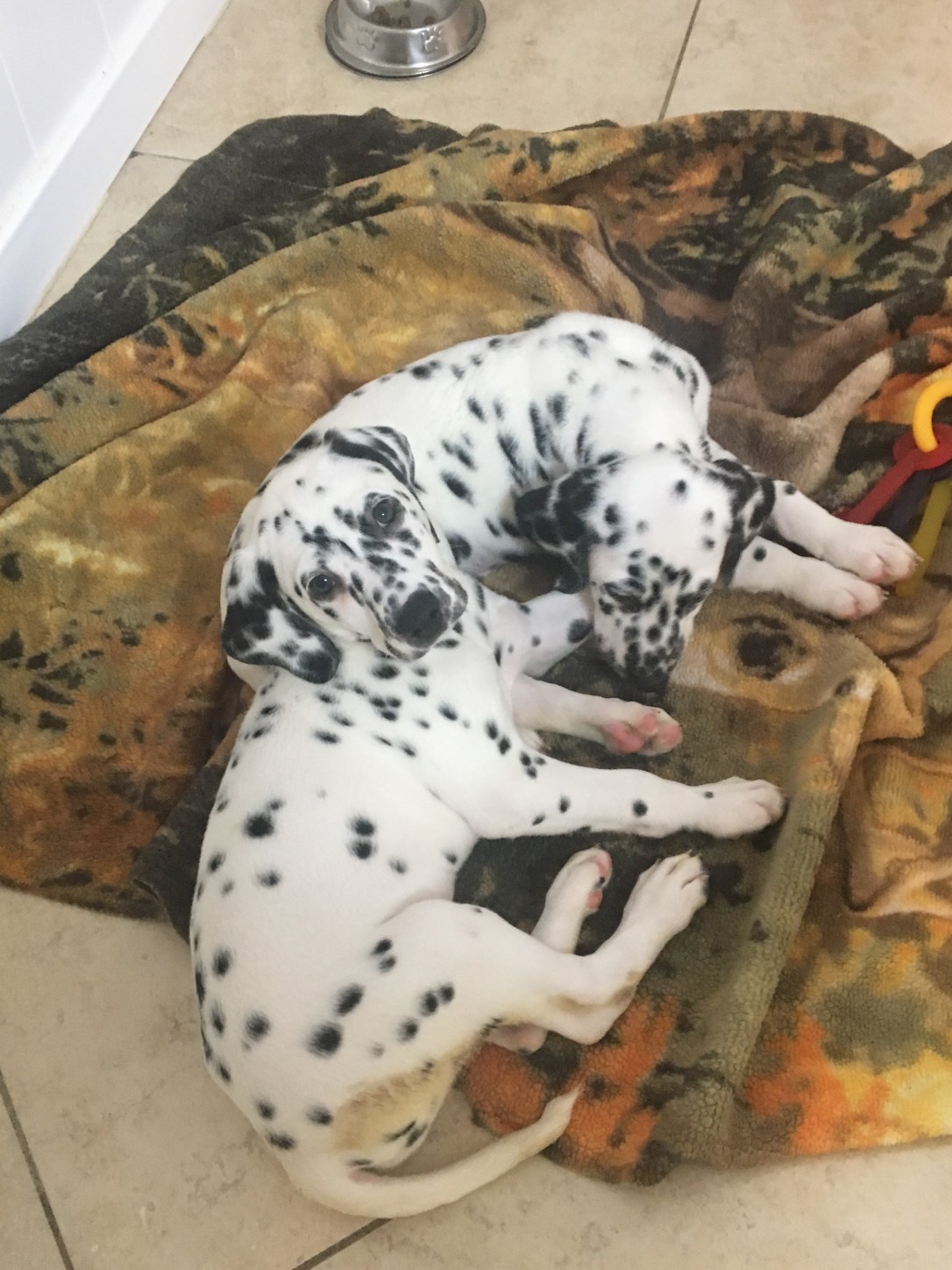 Puppy vocalisations (Cocker Spaniels, Dalmatians and a Labrador) noticed during a trip to a nearby puppy shop.