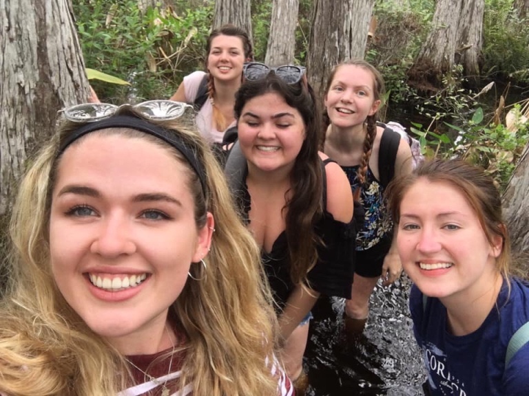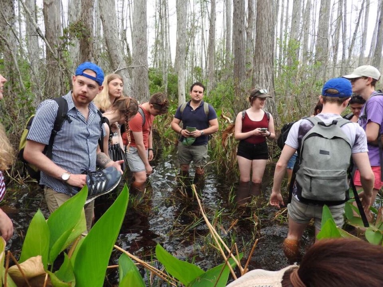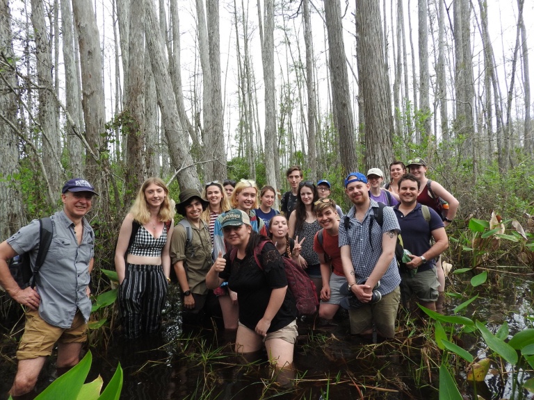 After Taylor’s talk had concluded, we made our way to a local nature trail in order to complete a swamp wading activity. And with wet shoes at the ready and personal belongings tucked away neatly in our backpacks, it wasn’t long before we were knee deep in the lukewarm swamp water, surrounded by tall cypress trees and the tranquil sounds of nature, accompanied by the sound of students screaming, roughly grabbing tree branches and hurdling over logs, whilst attempting to avoid falling face down into the swamp.