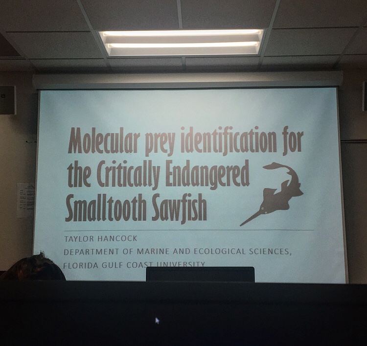 Figure 55: Presentation about the molecular prey identification for the Critically Endangered Smalltooth Sawfish, as presented by FGCU’s Taylor Hancock.